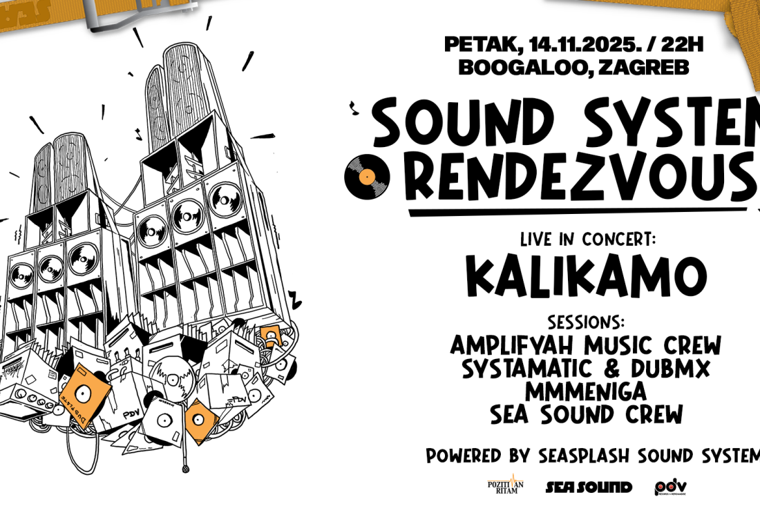 Sound System Rendevouz prvo izdanje glazbenih susreta zakazano je za petak 14. studenog u klubu Boogaloo! Bogati glazbeni program, reproduciran na moćnom Seasplash Sound Systemu predvodi koncert KaliKamo, dok će se za ostatak zvučne slike kroz večer pobrinuti: AmpliFyah Music Crew, Systamatic & DUBMX, MMMeniga i Sea Sound Crew!